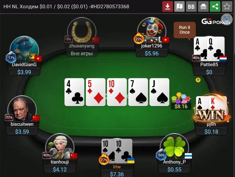 там таки у двох ак и ад і на флопі 10, якось прикро стало могла потроїтись якби не струсила