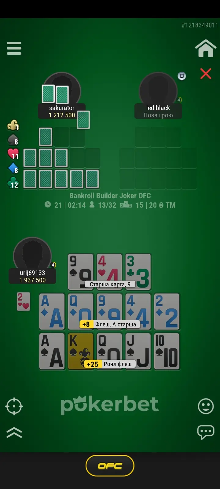 Вітаю, не розумію правил цієї гри, але двічі Роял флеш зібраний! 👍👍👍