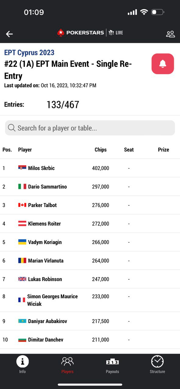 KD – Розкажи, будь ласка, про твою участь у EPT на Кіпрі. Безумовно, я тебе вітаю з потраплянням і ІТМ в двох реально дорогих кількаденних турнірах. Це була твоя перша в житті серія (жовтень 2023), після неї ти вже їздив до Праги (грудень 2023). Але я не про фінрезультат. Мене і читачів цікавить швидше саме спортивно-психологічна складова як підготовки, так і відігрування таких турнірів. В нас на Cardmates більше – онлайнова покерна аудиторія. Та нерідко в блогах звучать фрази «хочу готуватись до виходу/поїздки в офлайн, на серії». І з гарною підготовкою і тисячами відіграних турнірів – це непогане маточікування для деяких реально підготовлених гравців. Але, крім фінансів і бажання, є ще питання - фізична готовність, психологія, вплив самої атмосфери, постійна максимальна концентрація на свої роздачах – які в тебе проходять у сто разів рідше, ніж коли 8-12 столів одночасно на моніторі у звичайній сесії. Як ти на все це дивишся?