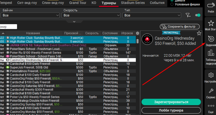 Зареєструватися в новій акції ПокерСтарс можна у вікні завдань. Для цього потрібно зайти в покерний клієнт Старзів, а далі дотримуватися покрокової інструкції: