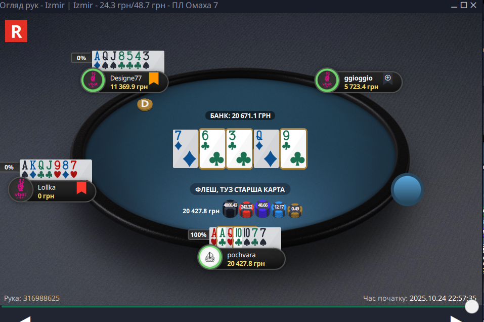 кину кілька роздач. одна просто як фіксація найбільшого банку розіграного мною у вбет.
