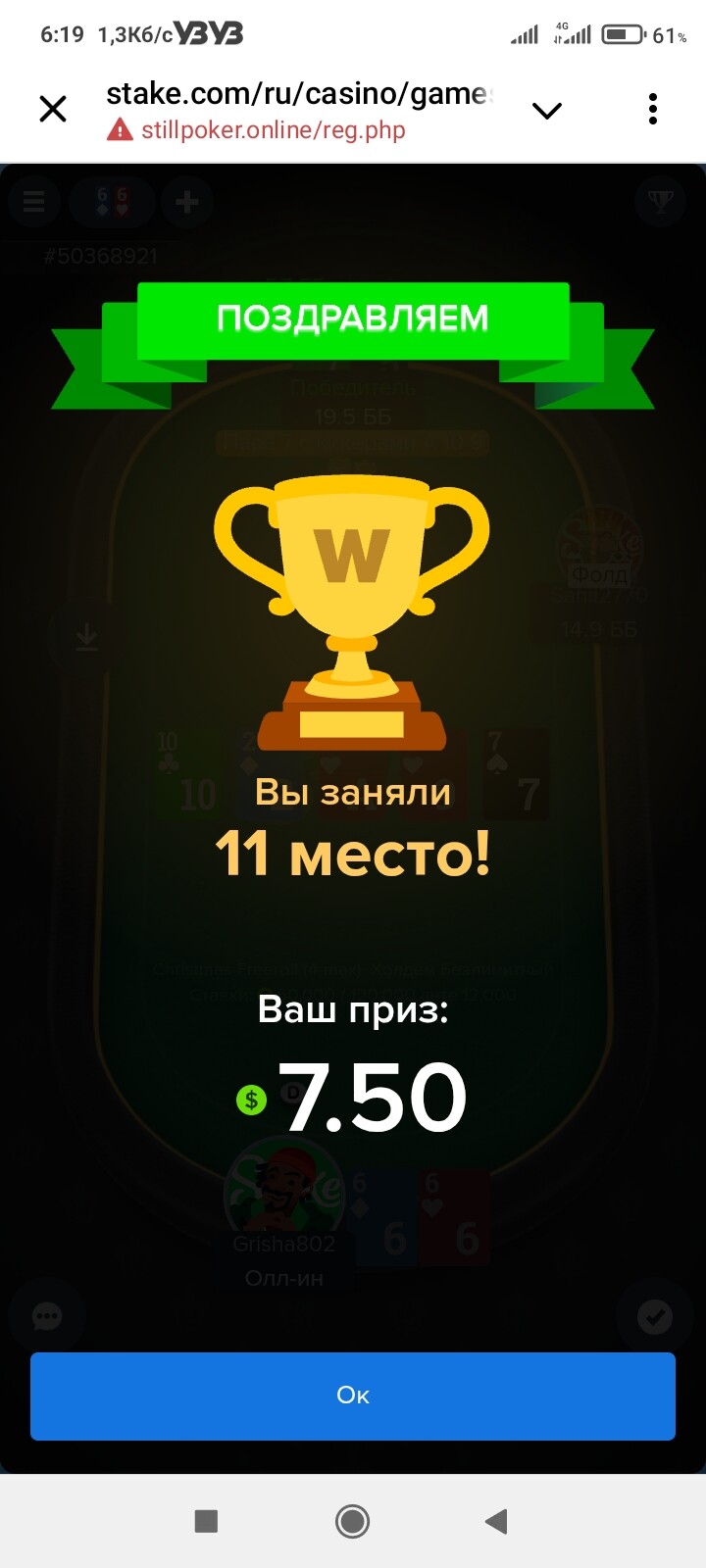 Дякую за побажання.Щодо 5 місця в хомці,хтось має бути бабл.треба щось міняти.Та ще й на фінальний стіл вийшов 2м.здається.