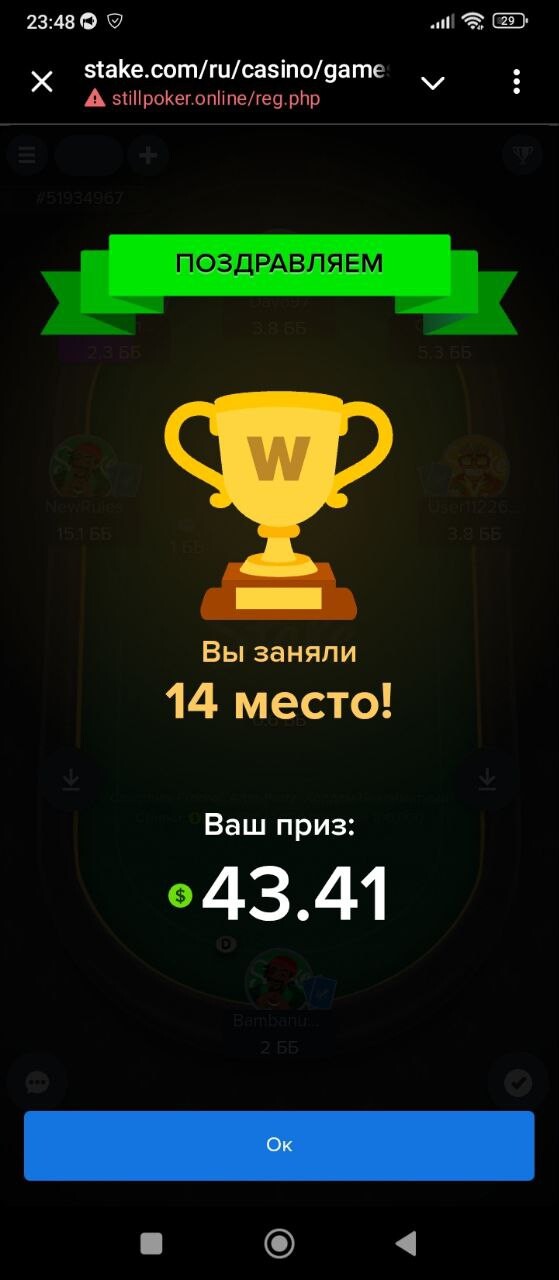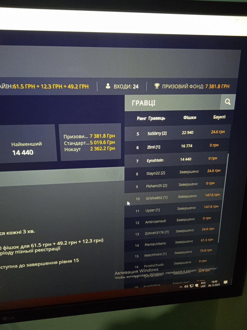 Посів призове третє місце.Виступив добре.Своєю грою на фінальному столі не задоволений .Адже вийшов чіпаком на фіналку.Маю 583 ТМ.грн.