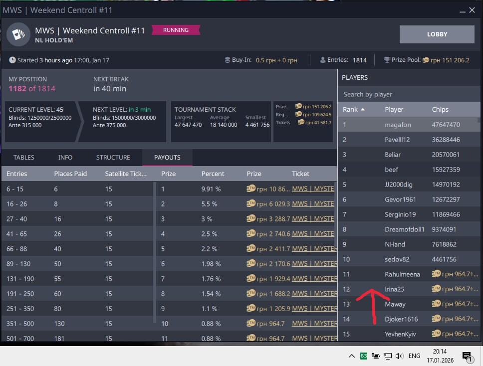 Сьогодні грала фріху на вбеті. І похвалюсь залишила турнір на 12місці (900грн плюс квиток за 2700).