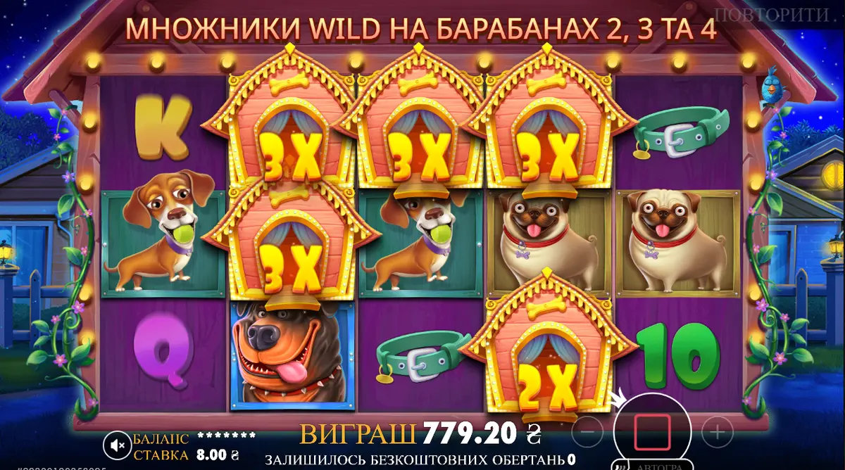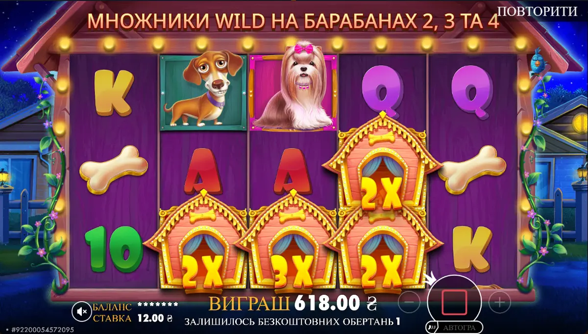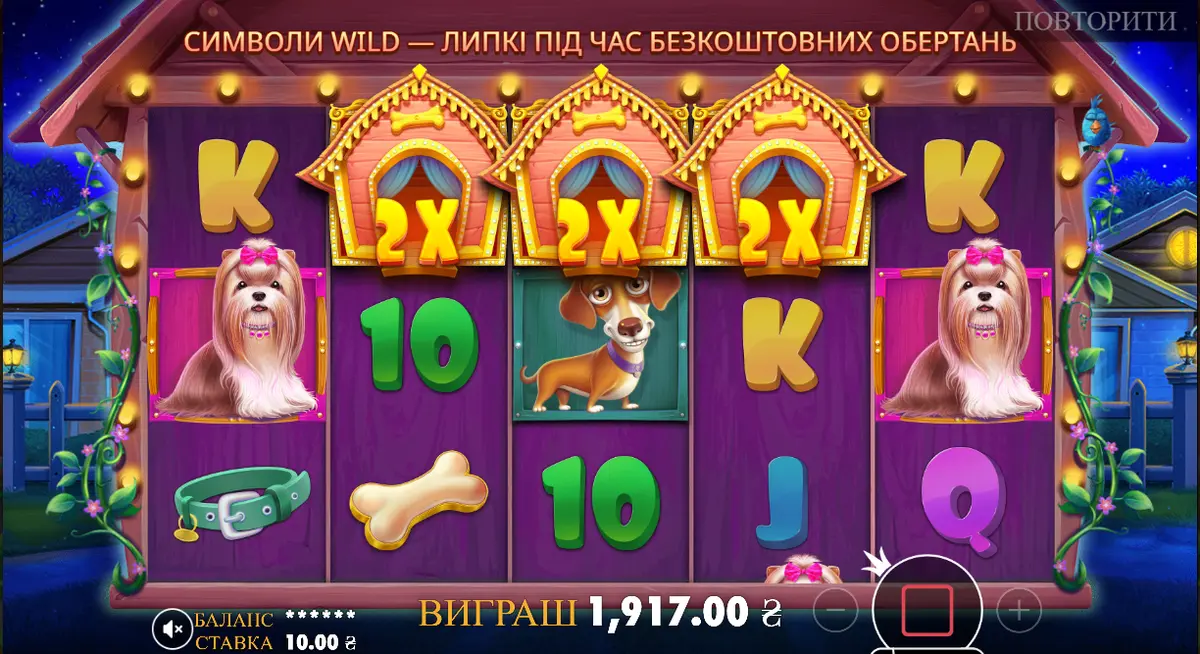 Задепав 1000 грн і почав крутити свій улюблений слот "The Dog House". Ну собаки точно мали б налякати усіх чорних кішок, подумав я. Проте початок не задався совсім: