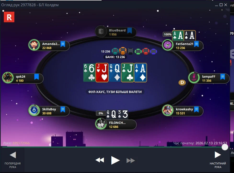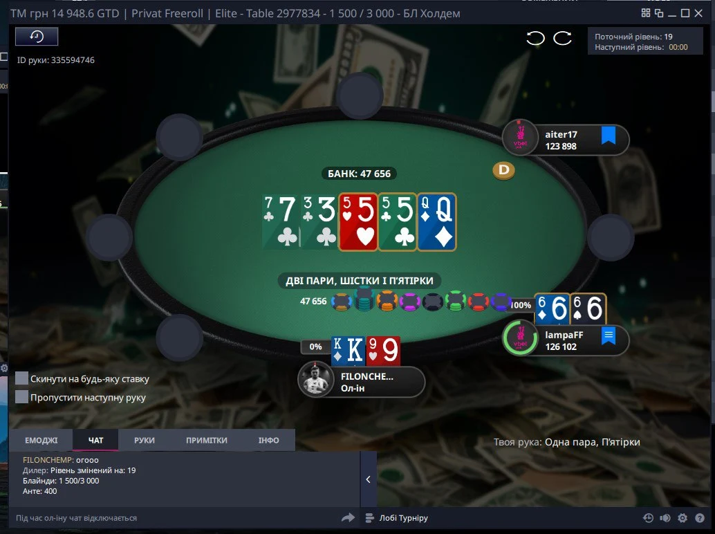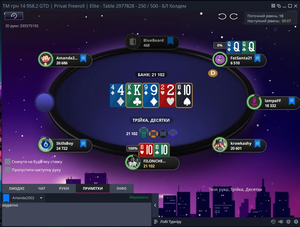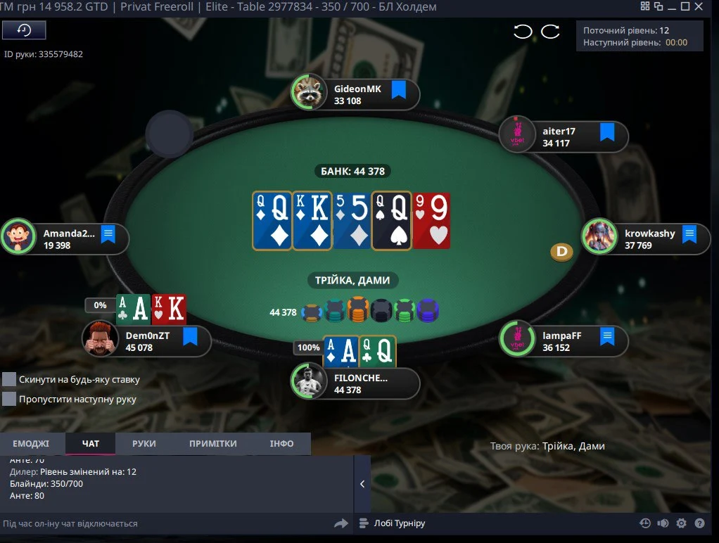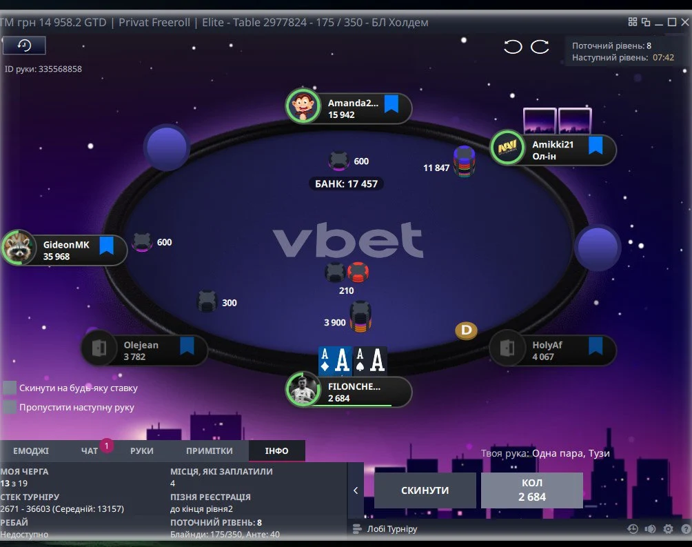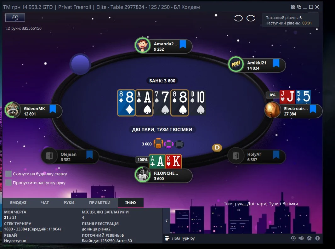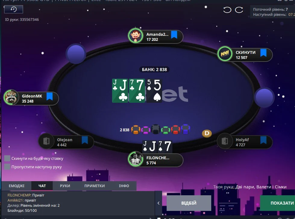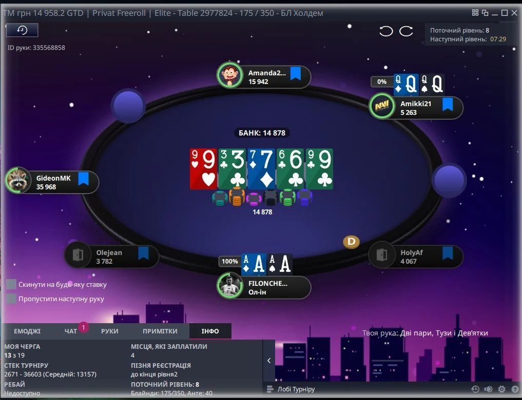 👆Опонент поставив 2 бб, я захистився...потім 1/2, я перекрутив трохи і пуш в мене, де можна було легко викидати, але я вколив)