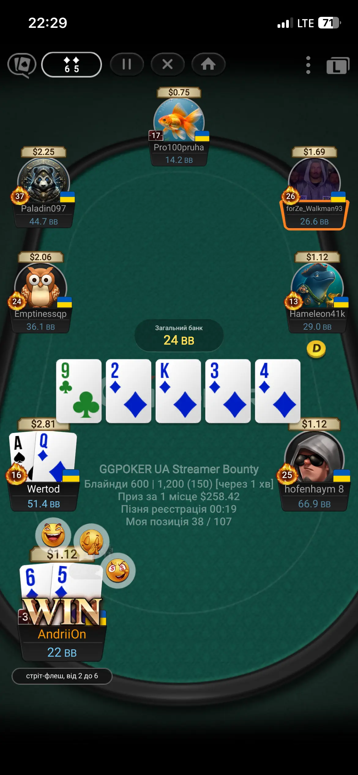 Зібрав стріт флеш і не добрав з дами… буває 🤷♂️