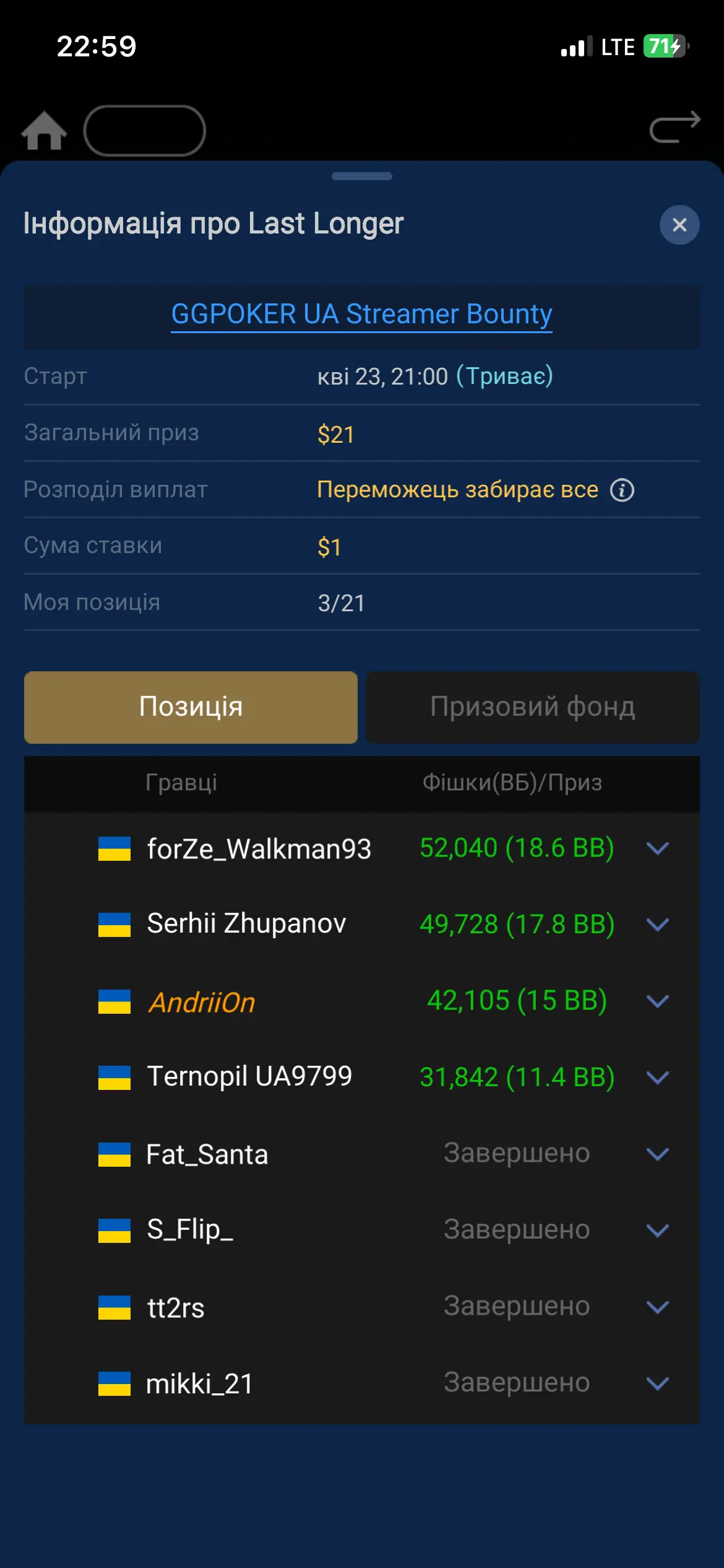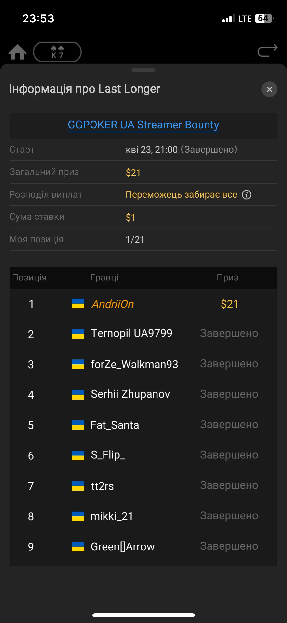 Пересидів я Олега бо стек був трохи більший і перше в лонгері вийшло на перший план, бо ділер карти взагалі не давав. Раз А10 випало на стеці 6бб а у Олега було вже 2бб… отже легкий пас 🤷♂️