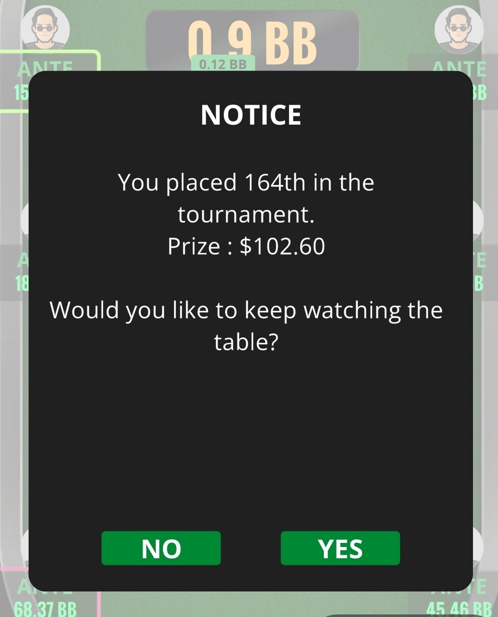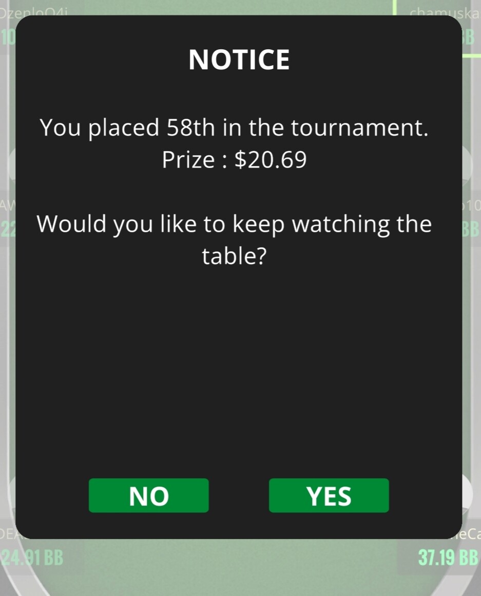 І залишився ще турнір за 4.4$. Чесно кажучи я не розраховував на нього, тим паче після вильоту з КК за 66$ я трохи підгорів, але я ще пару годин приділив увагу цьому турніру.