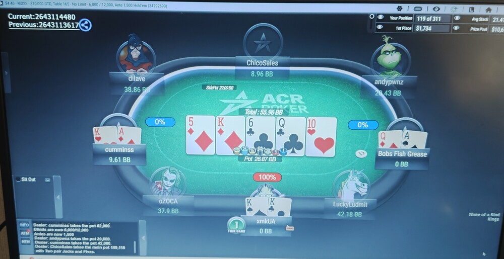 Одразу забегу трохи вперед, ACR цього вечора дропало багато квитків, тому окрім 55$, я зіграв ще три турніри за 66$… за 11$ та за 4.4$.