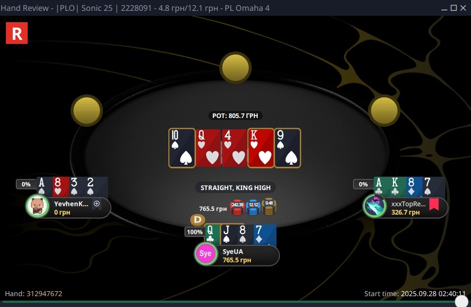 Вітаю!) гарно вийшло! По роздачі з КК звісно дефолт, трохи не пощастило
