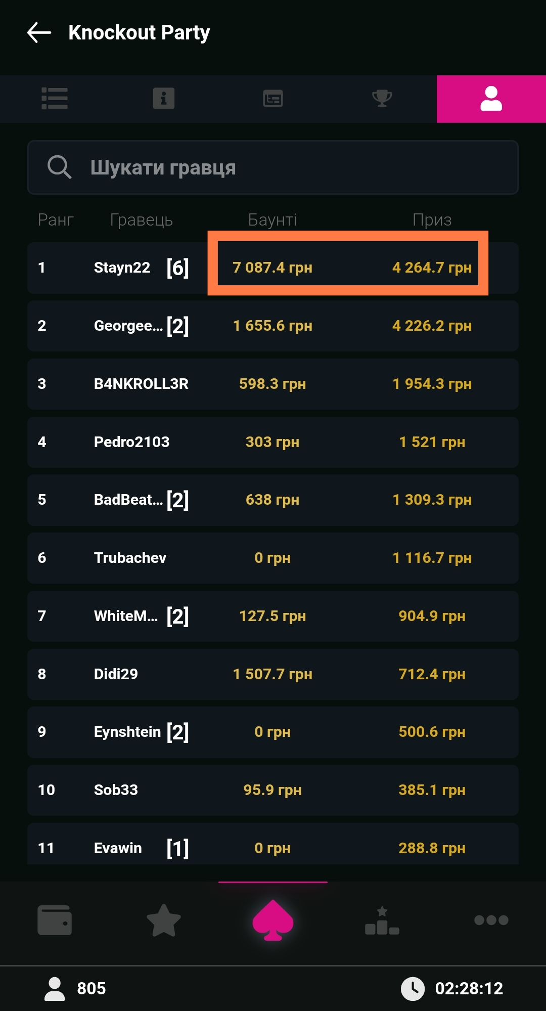 Потім зробили 7 входів😅 по 280 в кнокаут паті і підгрузили турнір за 50грн😁