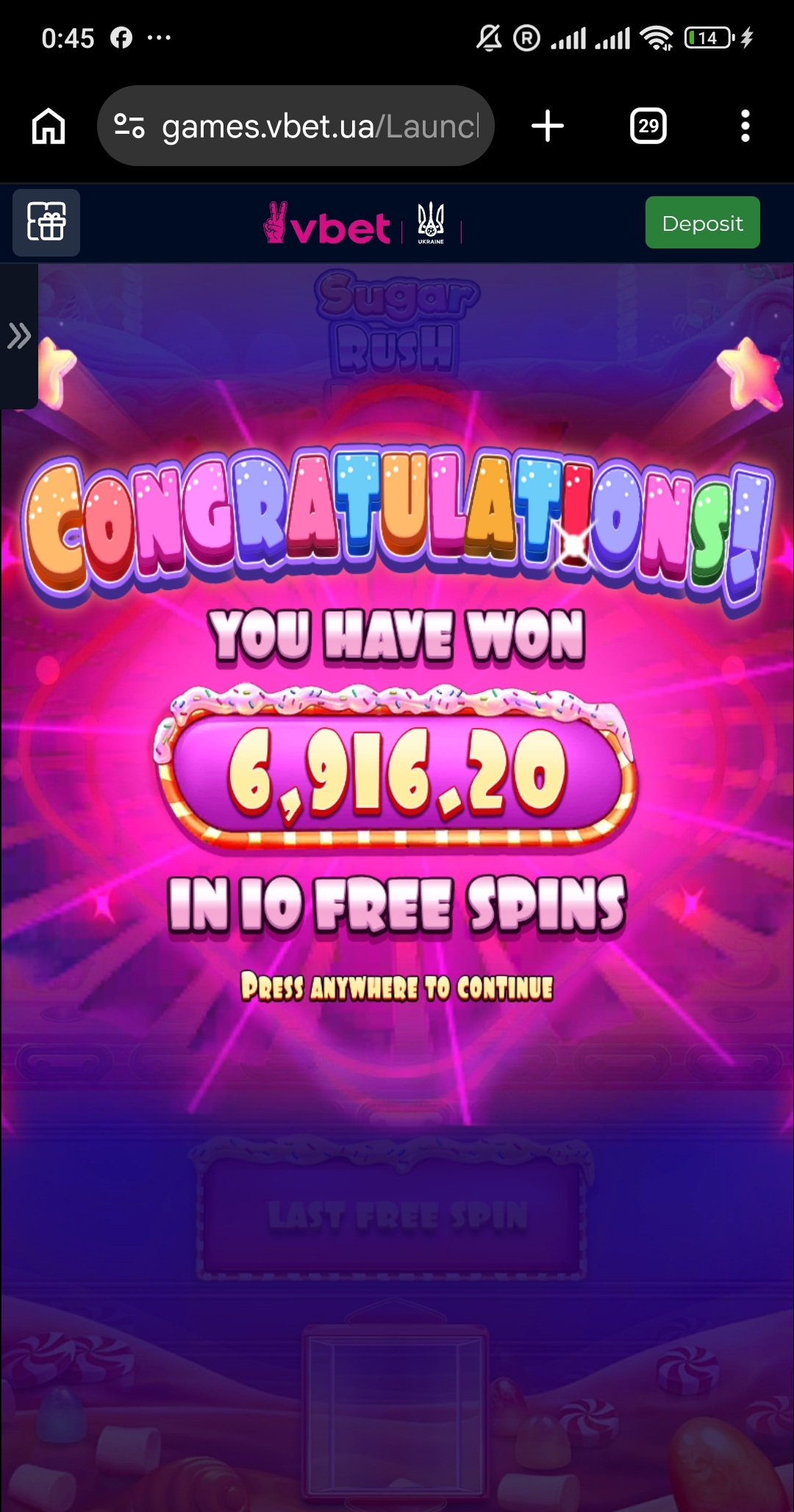 Вітаю!!Дуже гарний результат! Ти в сугарі купляєш бонуски? бо я відкрутив 7500 крутків був за 3 дні по 40ко, по 1 грн і чуть більше тисячі по 2 грн! дало 6 бонусок по 40 копійок з них тільки одна дала 190 грн а ті всі максимум х20! по 1 грн випало 5 бонусок і зних одна х96 а ті всі до х15! ну і 1 бонуска по 2грн випала яка дала х25. потім купив 5 бонусок по 20 копійок - макс х55 було. 3 бонуски по 40 коп - також максимум х65. і одну купив за х500 по 20 коп яка дала х450)) тупо зїдає і все! може підскажеш як там потрібно грати?))) дяку.! Гл