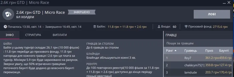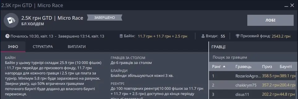 Дешеві турніри через раз,через два в ІТМ,все що вище 500 грн бай-ін,де більш менш призи-це тільки в повний місяць,і то перед великим святом.