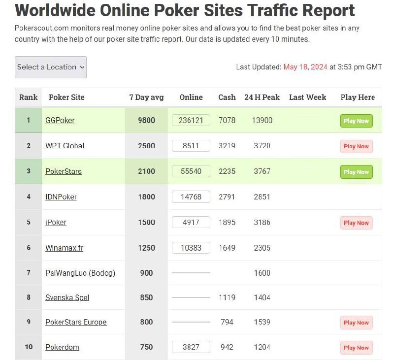Нещодавно ми писали про те, що покерна мережа WPT Global вперше за три роки увійшла до числа топ-3 найбільших покер-румів за трафіком й про те, що керівник компанії ставить за ціль стати покер-румом №1 у світі. І ось, згідно з даними порталу PokerScout, мережа WPT Global вперше в історії вийшла на друге місце за кількістю трафіку кеш-ігор. До цього кілька років поспіль лідерами за цим показником були GGPoker та Pokerstars.