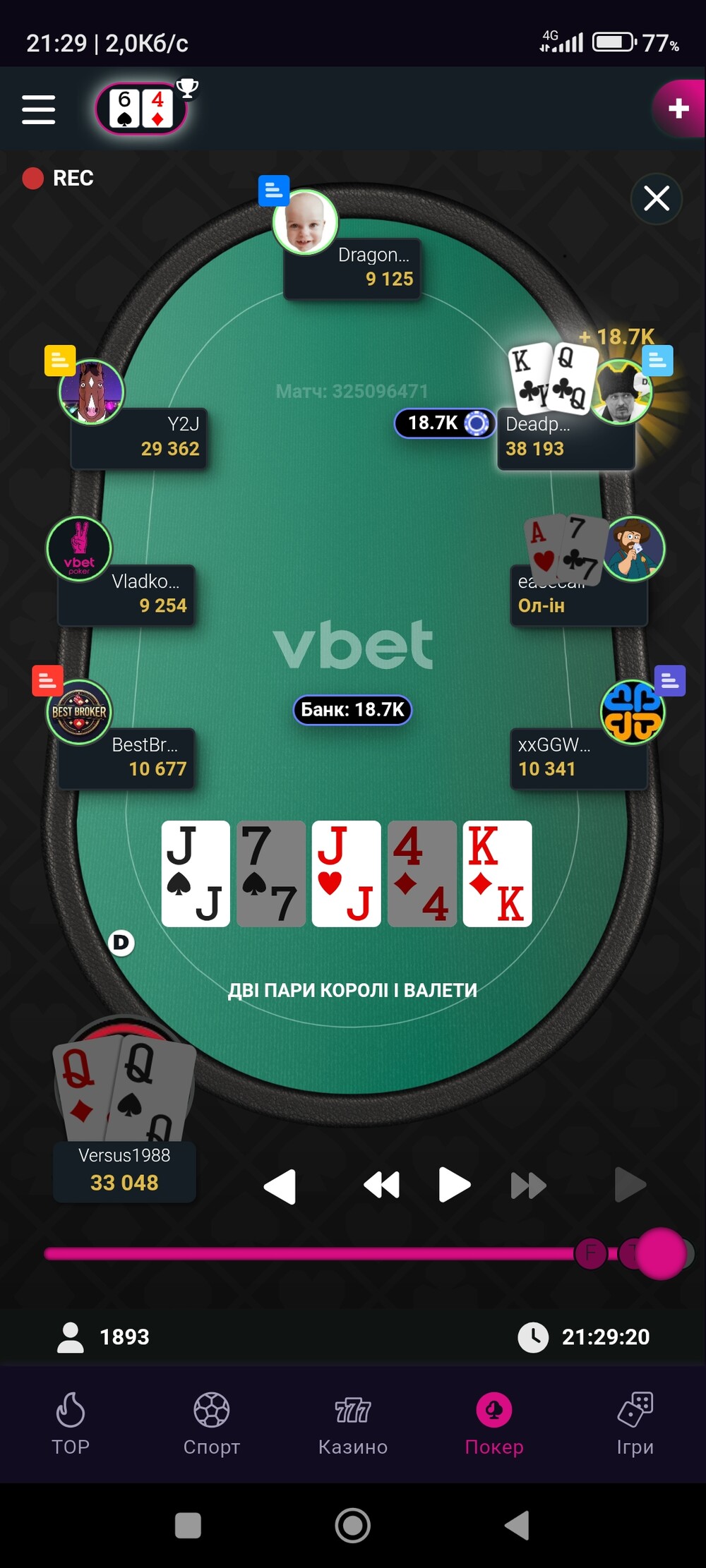 Потім, в принципі нічого дивного, мої QQ не встояли проти КQs Дедпула. І як завжди на рівері)