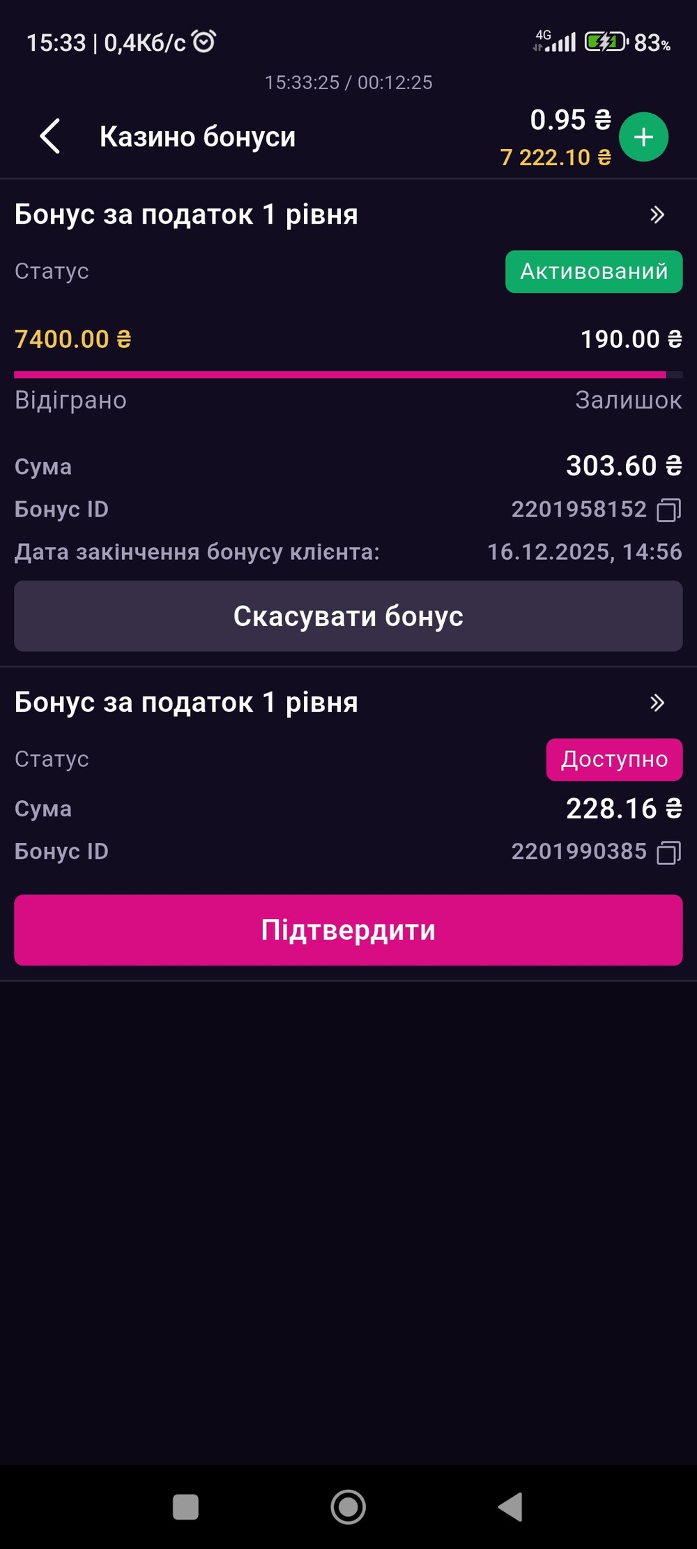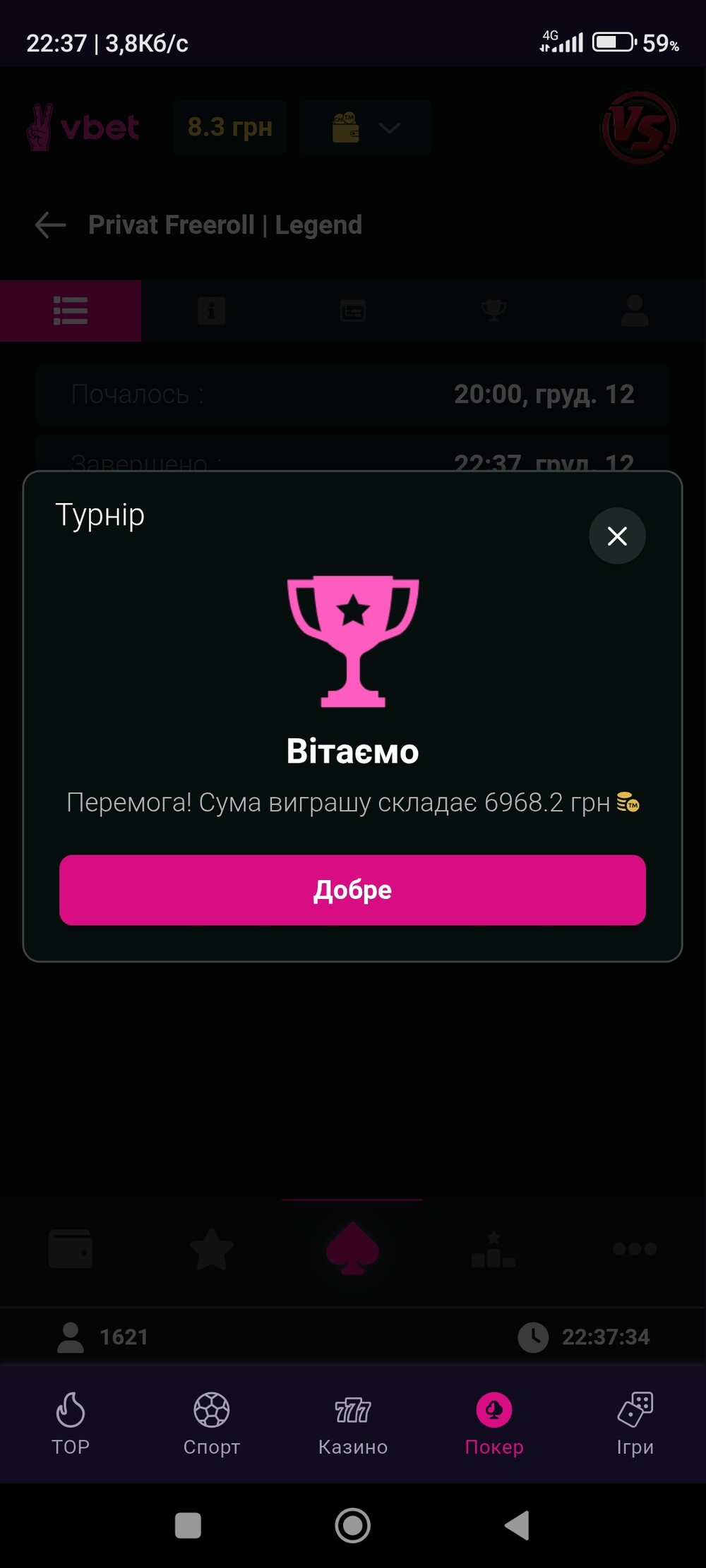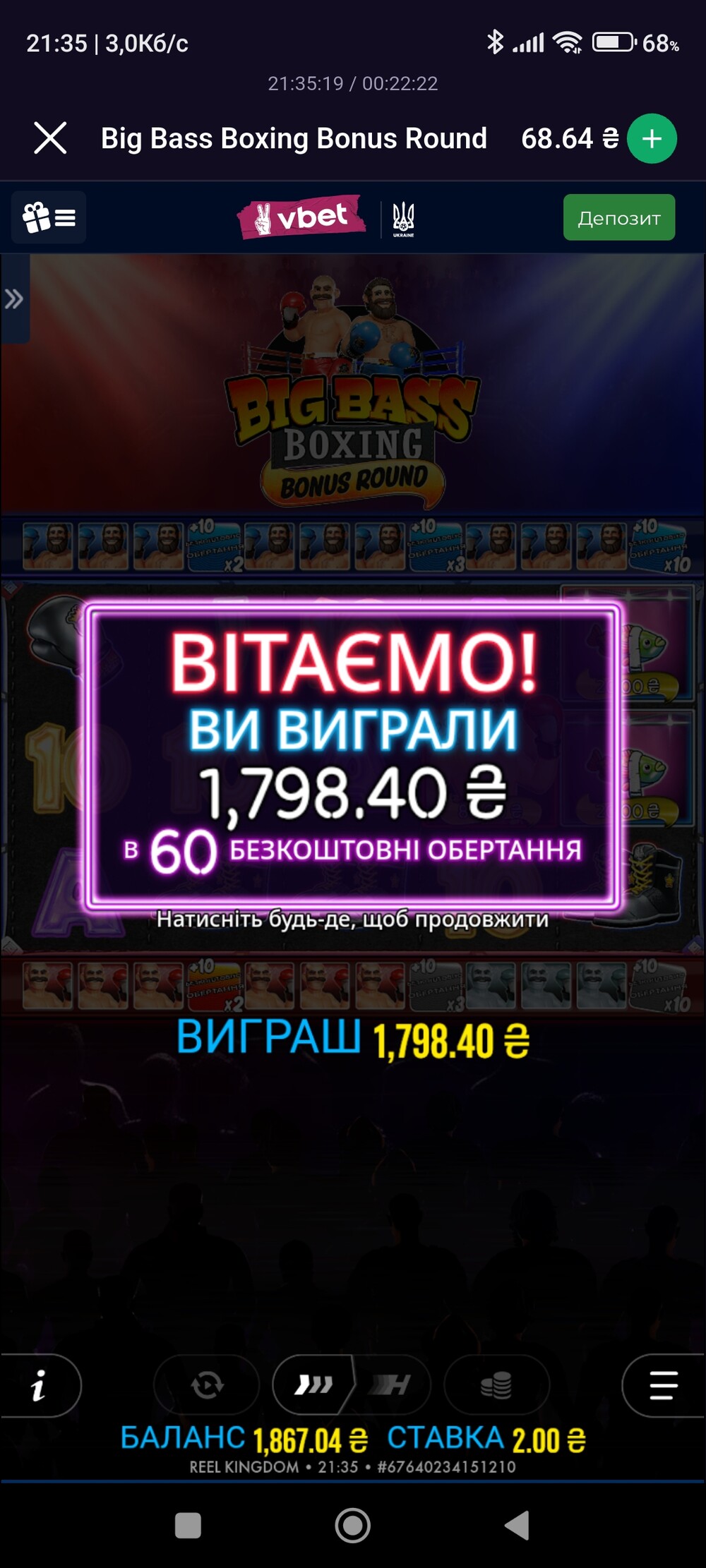 Виграш у майже 7к ти вийшло відкрутив у 10к грн але за мінусом податків трохи більше 7 отримав на карту.