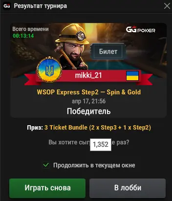 Йду виконувати WSOP Express, кручу спін за 2 бакси…
