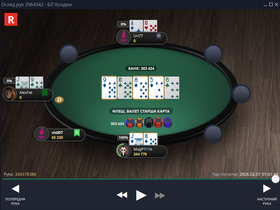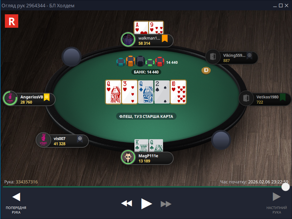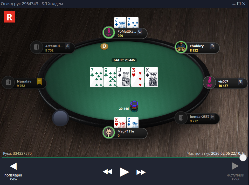 Чому я заговорив про 3бети? Бо у цьому споті я дивом відскочив саме через те, що заколив префлоп – опинись ми на такому флопі з розігнаним банком – я б вже нікуди не подівся, але програв фішок по мінімуму, бо «приховував» свій тріпс саме проти конкретного опонента. Повертаємось до стартового стеку.