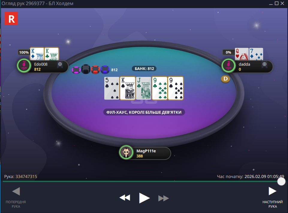 (Якби не ця 9ка наші стеки стали б приблизно 35 і 47 блайндів відповідно, а це вже не обіцяло б нічого, окрім запеклої боротьби, котра невідомо коли і невідомо чим завершилася б.) Однак, маємо те що маємо – а маємо ми довгоочікувану перемогу!🤩