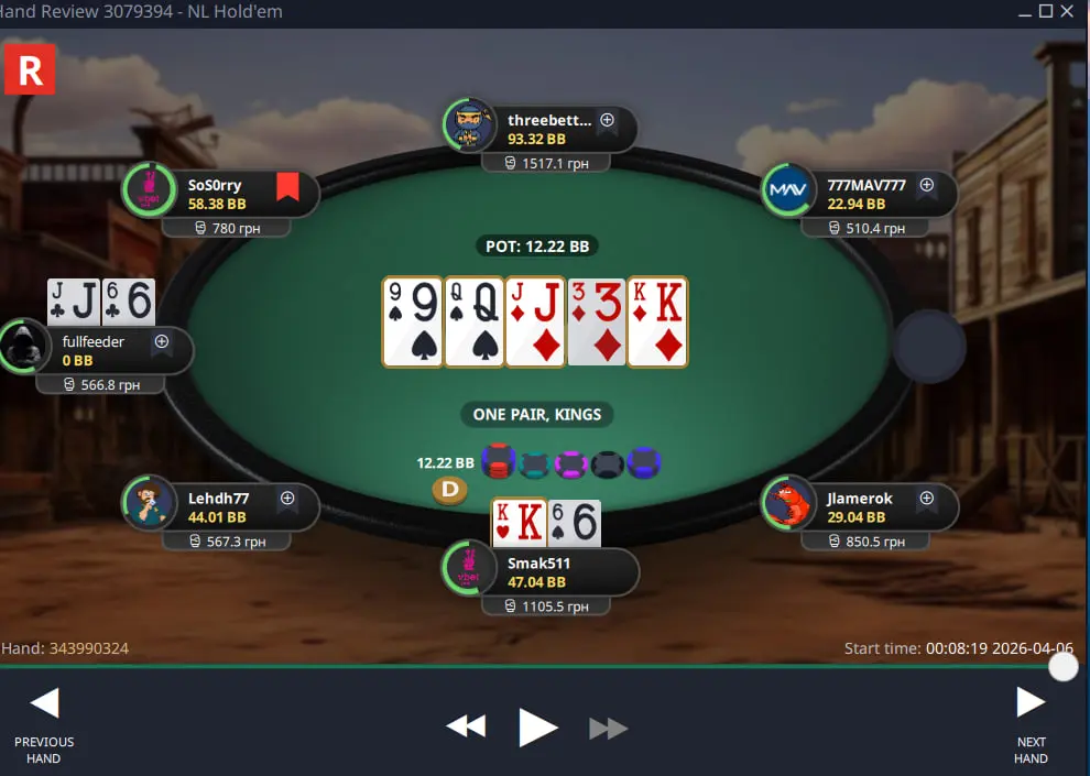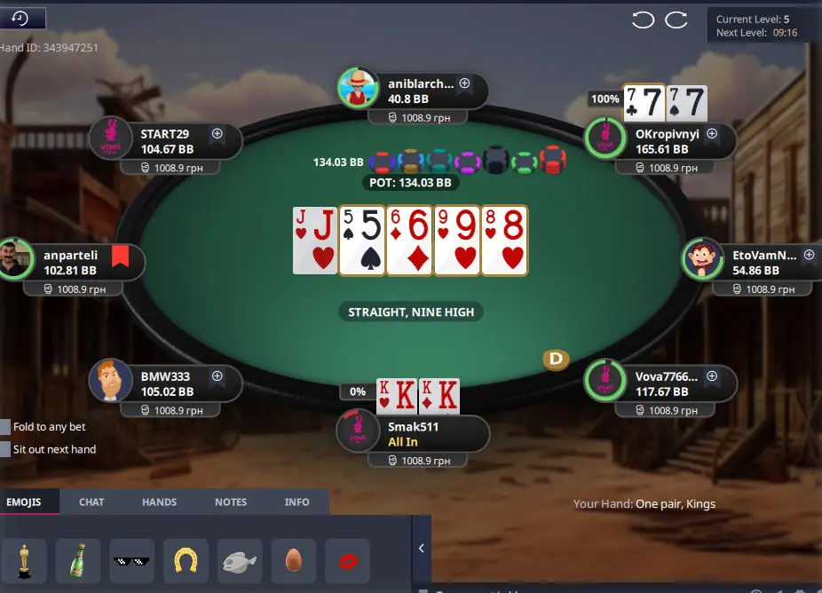 Другий нок прийшов звідки я і не чекав, не у поїздці олл-ін а постфлоп, я відкрив опен рейзом в 2бб К6, суперник поколив, я чек, кол, і на рівері він вирішив що я пустий і запушити, випав топ нок 2400 грн, нажаль скріну немає.