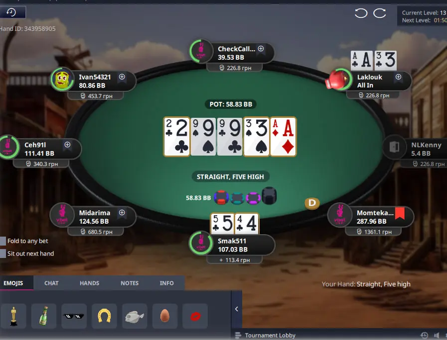 Кульмінація, вже на піздній стадії містері коли топ нок 7000 грн в грі в мене знаходиться можливість поїхати алл ін покриваючи двух гравців, і навіть якщо не виграти залишитися в грі, в мене на руках моя улюблена комбінація Q9 сьют, я виставляюсь флоп немає ніяких співпадінь, але є сподівання на даму або бекдор флаш дро, терн піка, в мене з'являється десь 30 з чимось відсотків на перемогу і ось виходить рівер піка, я в шоці, мені нарешті десь доїхало, все зависає, розпочинається фіналка я забираю гроші за їх нокаути та містері, дивлюсь на баланс і розумію що мені випав топ нок, це було дуже несподівано і приємно, я забрав два топ ноки за турнір 2400 та 7000 грн та ще топ стек на фіналку.