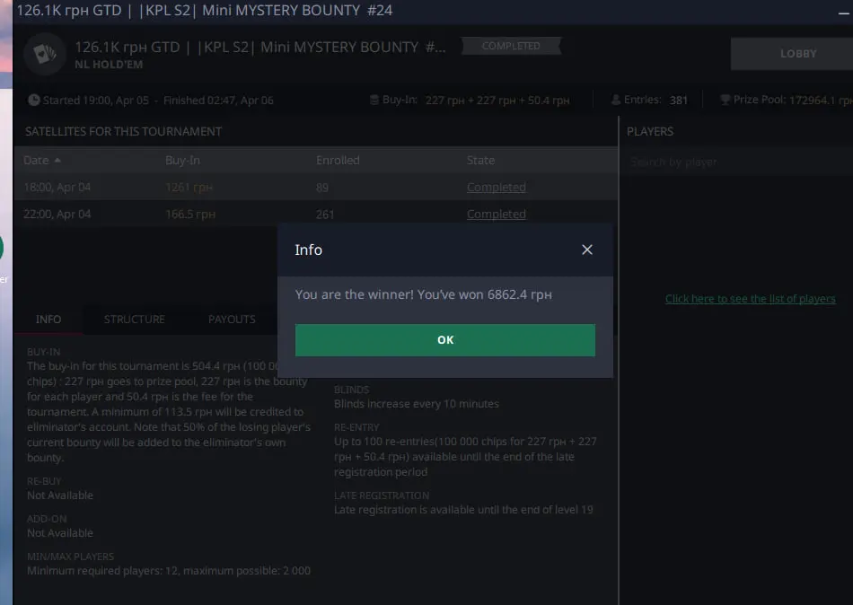 В сумі вдалось виграти десь 5000 грн зі всіма іншими бонусками, непоганий такий бонус до вже виграних ноків у турнірі.