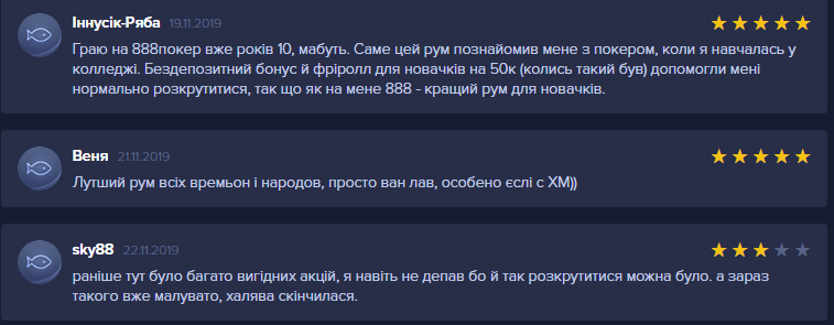Не завжди можна судити про покер-рум за відгуками про нього, але все ж це дуже важливий критерій для вибору покерної кімнати. Натисніть кнопку залишити відгук праворуч від назви покер-руму і ви відразу потрапите в розділ відгуків. У ньому можна прочитати враження від гри різних гравців.