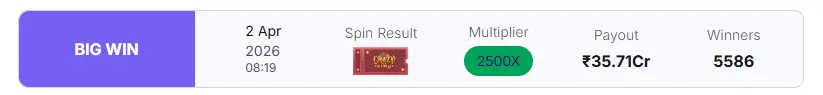 Я знатно випав, така дічь випадає може раз в рік може раз в два роки, який шанс на те що зпівпаде дві події, випаде 50 ікс топслот та ще й крейзі тайм який один на всьому полі.