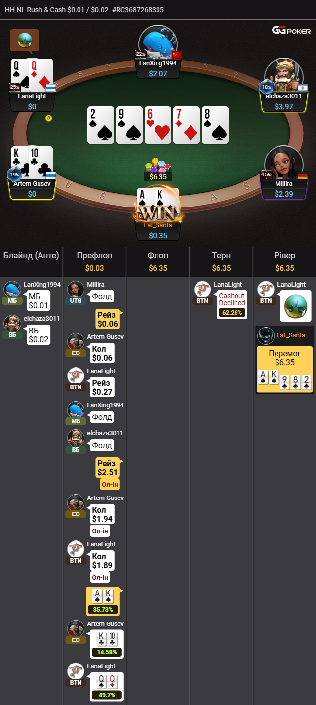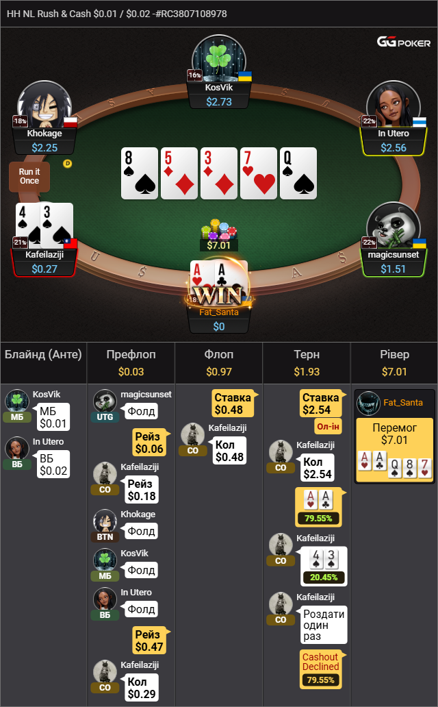 Тумороров зайшов на тва столи на рашендкеш по 1,40$ кожен, коли наростив стек на обох до 2$ здали такі хуллєри