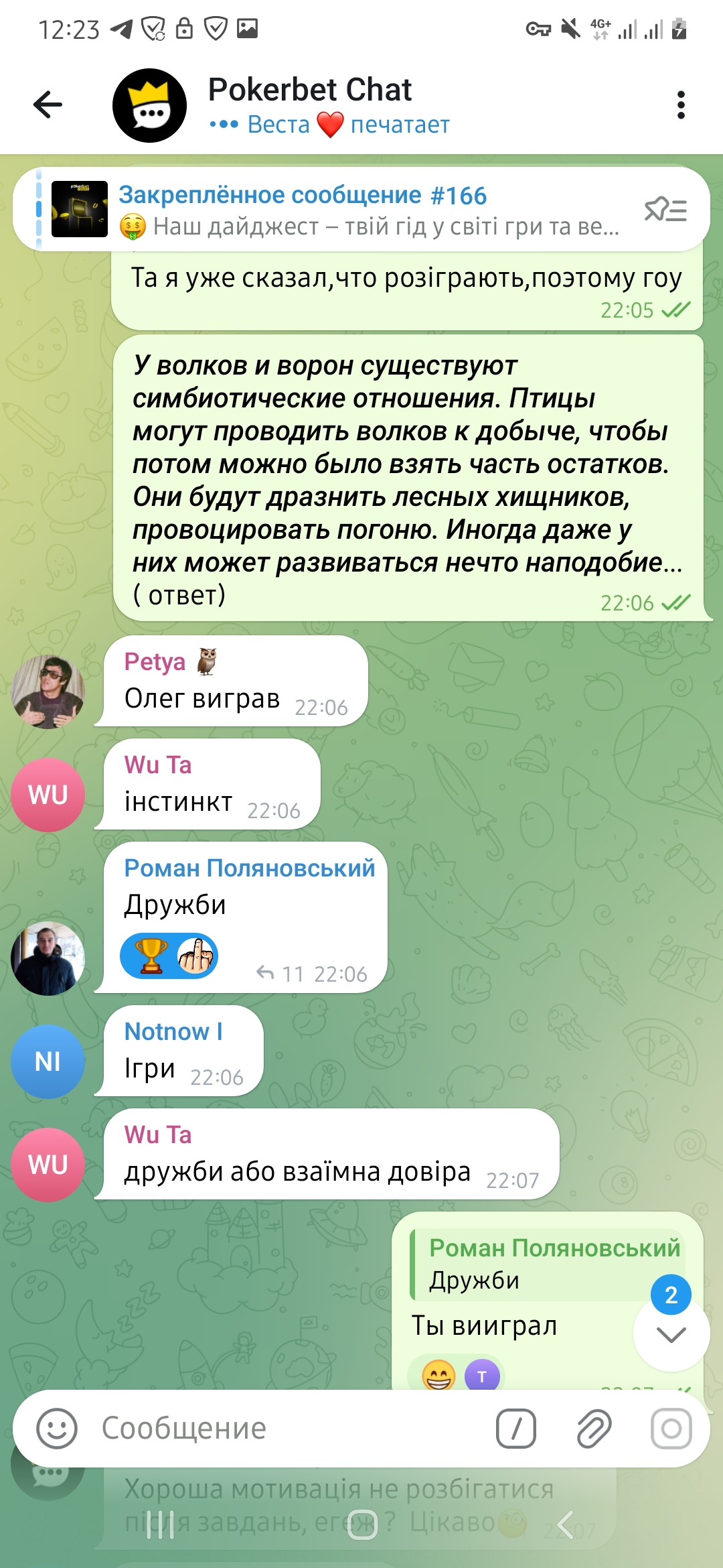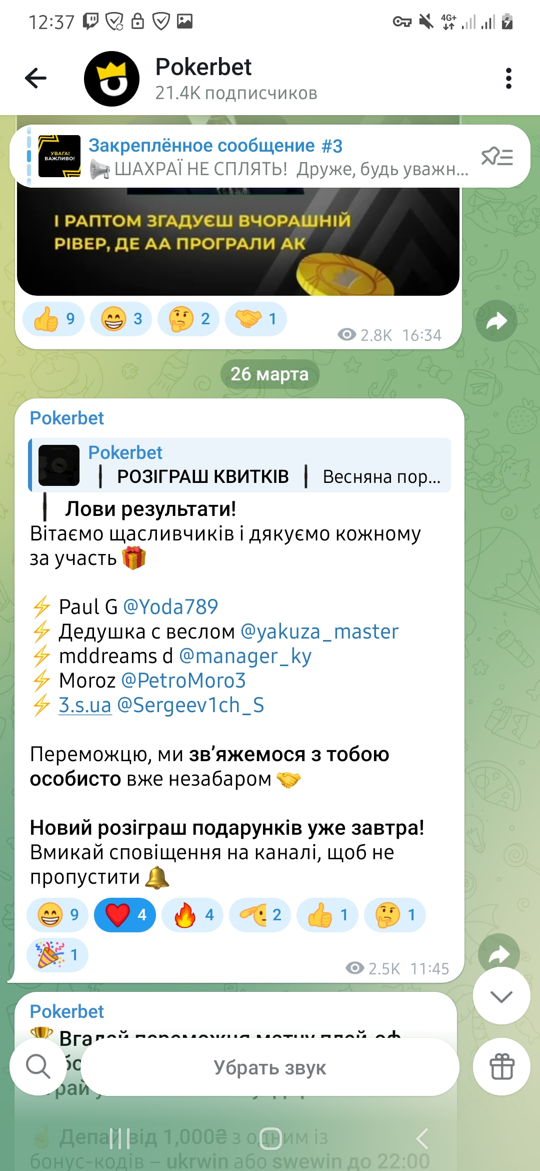 На наступний день ,бачу результати розіграша в тг покербета,що я виграв квиток на міліоник