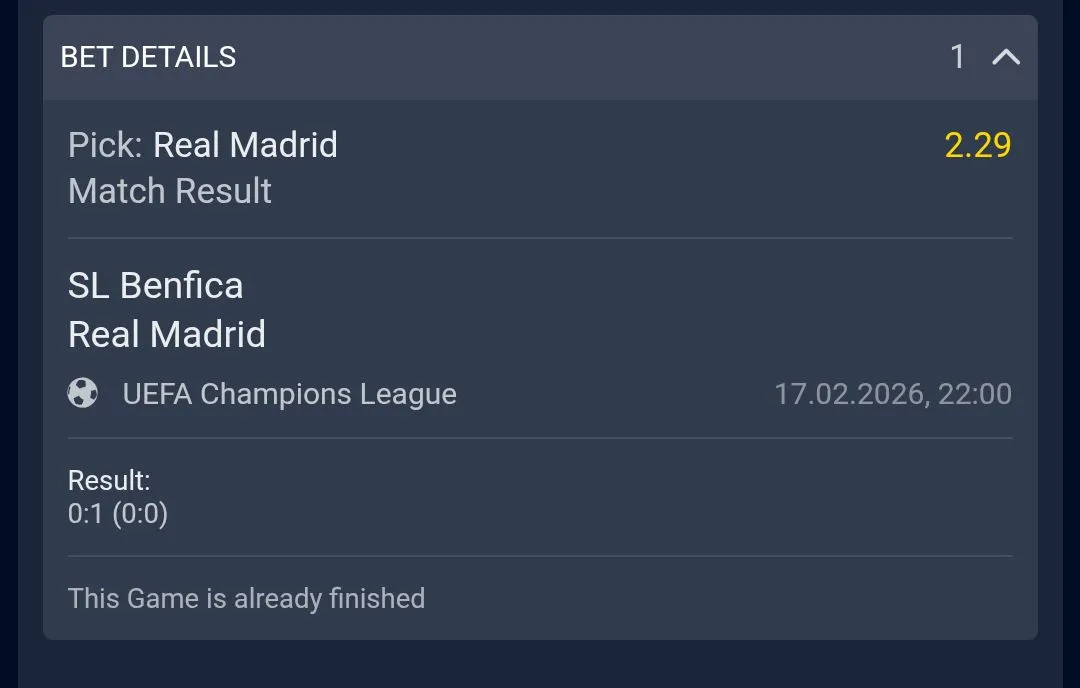 Реал виграв і переніс мені перемогу. А ставка на слабшу команду знову результату не дала. Вибравши 2 з 3 атсуайдера, не вгадав хто виграє у лідера. З цього можна зробити висновок, що ітм в покері ще далеко)))