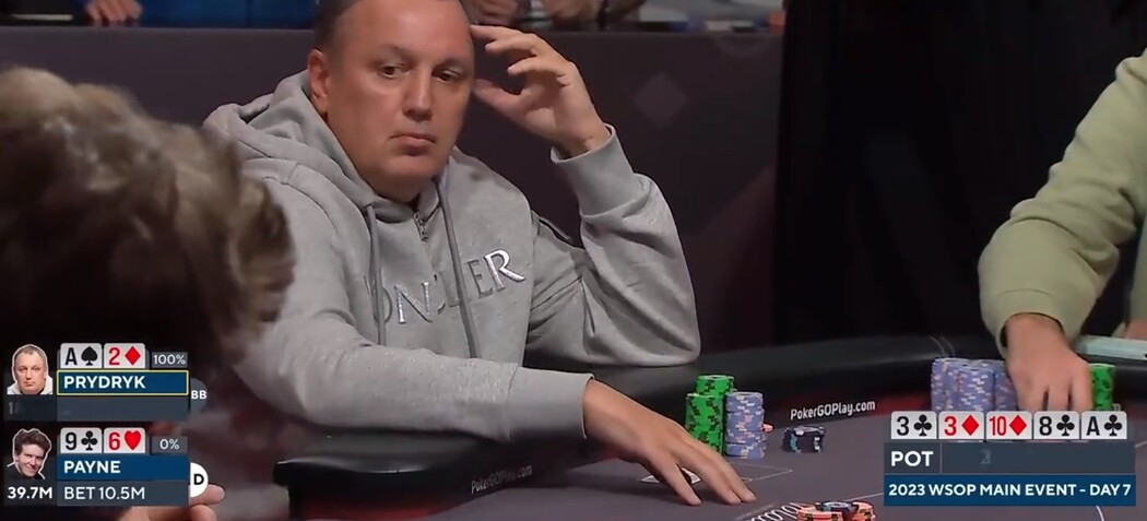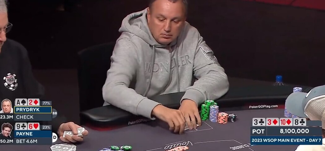 Руслан Придрик продовжує боротись за вихід у фінал МE WSOP 2023. На даний момент Руслан залишається єдиним українцем в Мейні. В одній з роздач Придрик зустрівся з чіплідером та сміливо спіймав його на блефі.