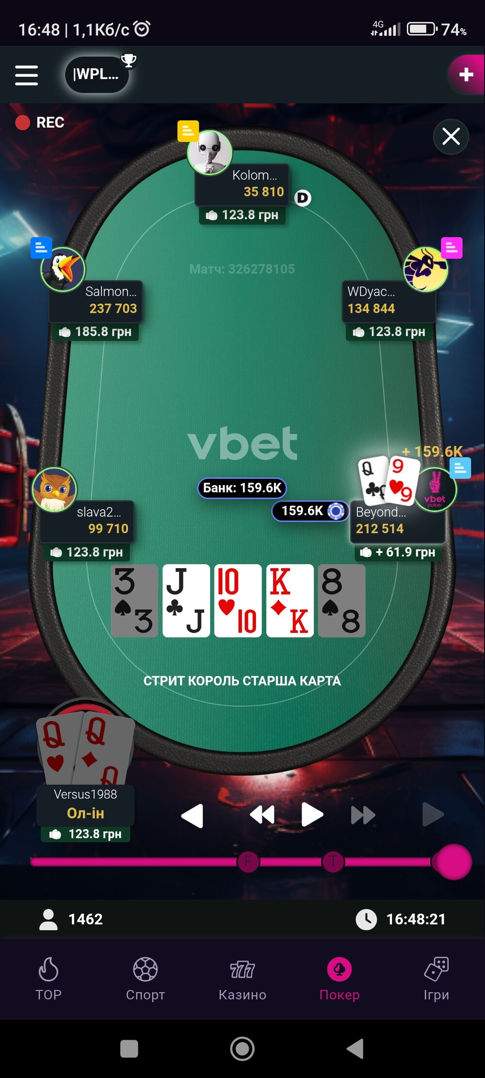 Наступна роздача, флеш дро на столі ще й з гатшотом на стріт, ми поїхали. Терн чудовий. Рівер - бомба. та не для мене