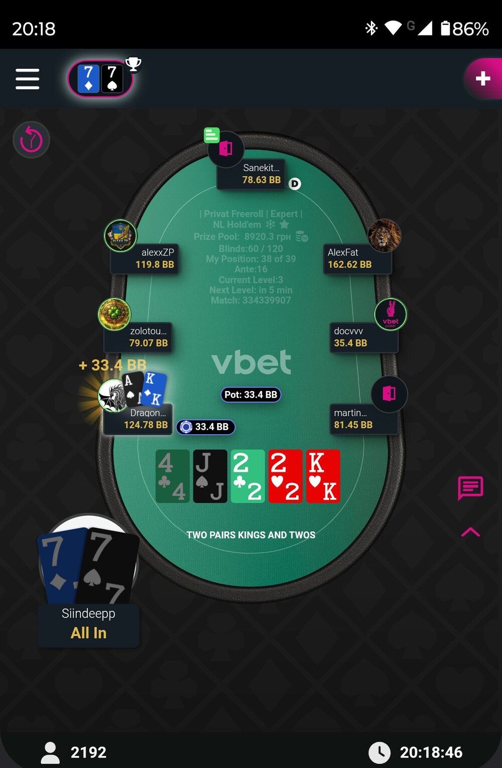 Почав , звісно, з традиційної хомки. Тож я заварив чаю, зеленого з жасмином, увімкнув , в навушниках Pink Floyd, щоб сюрпризи від дилера, не вибивали мене з гри, налаштувався на перемогу.)Але ... Ключових роздач було дві.